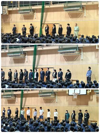 始業式の後、着任式と1年生と2、3年生の対面式を実施しました。