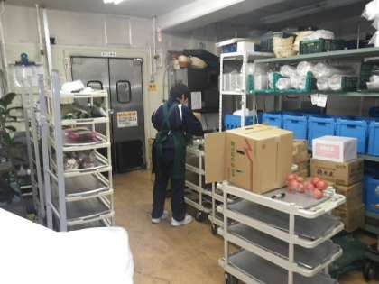 スーパーマーケットで商品の点検、野菜の袋詰め作業をしています。