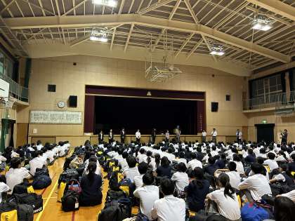 校長先生のお話の後、代表生徒の挨拶、旅行会社の方や看護師さん、写真屋さん、バスの運転手の皆さんにお礼のご挨拶をしました。