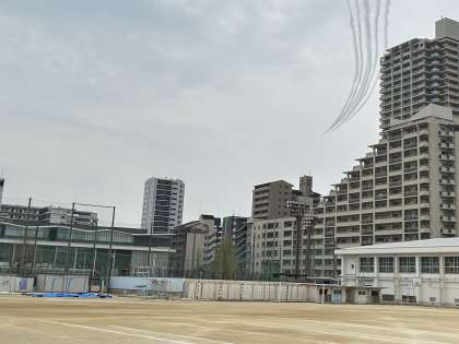 今日は、航空自衛隊のアクロバット飛行チーム「ブルーインパルス」が本校上空を試験飛行してました。関西万博ももうすぐスタートですね。