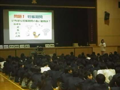 はじめに、保健委員から「命の歴史」、「生命の誕生」の発表があり、