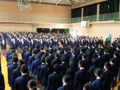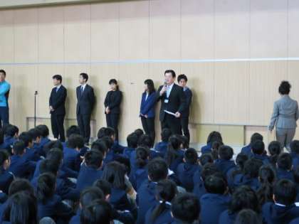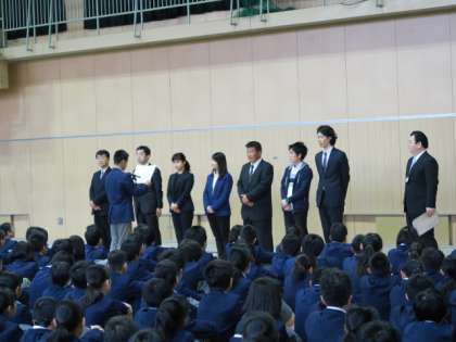また、新しく蒲生中学校に赴任した教職員の着任式を行いました。生徒代表から蒲生中学校がクラブ活動や文化活動が活発であることが紹介され、伝統ある蒲生中学校への赴任を温かい言葉で歓迎してくれました。