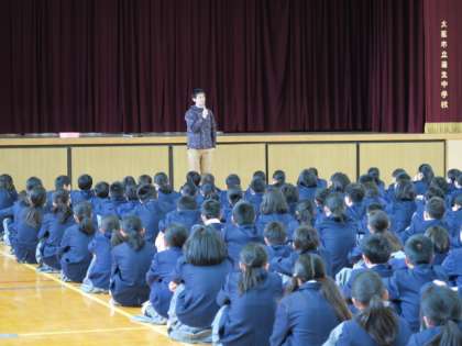 1年生が中学校生活のオリエンテーションを行いました。小学校と違い教科ごとに先生が変わりますので、教科の先生の紹介と最初の授業の準備物、どの教室で行うかなどの連絡がありました。また、授業に臨む姿勢として「おしゃべりしない」、「遅刻しない」、「忘れ物しない」ことや生活指導についてのお話が学年担当の先生よりありました。