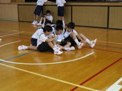 撮影した友達や自分の姿を熱心に見て、友だちの良いところや自分の動きを確認していました。