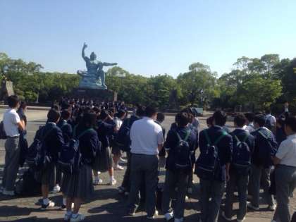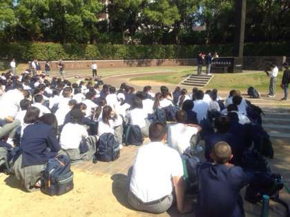 平和記念公園で、修学旅行委員会による平和記念セレモニーを行いました。