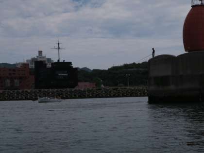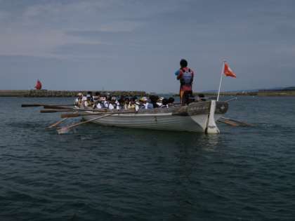 湾内で櫂の漕ぐ練習をしてから外海です。