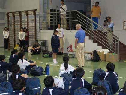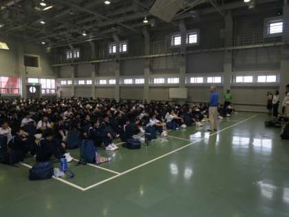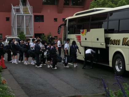 退所式を終え、バスに乗り海洋センターを出発しました。