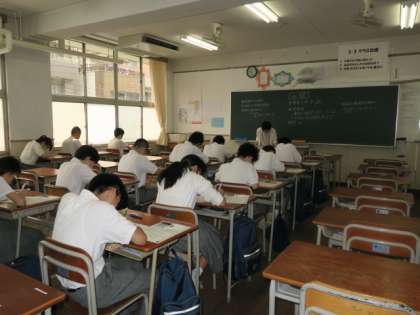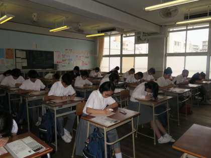 生徒たちは、自分の実力に応じた英語技能検定(準2級から5級)に真剣な眼差しで取り組んでいました。