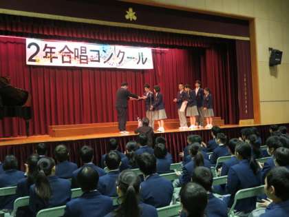 本日の午後、体育館において2年生の合唱コンクールを行いました。