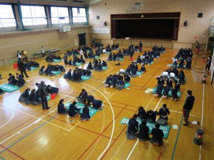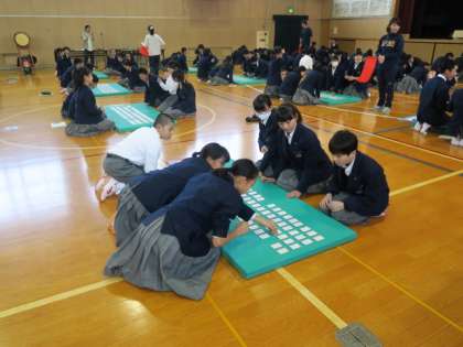 本日の午後、1年生は体育館において百人一首大会を行いました。