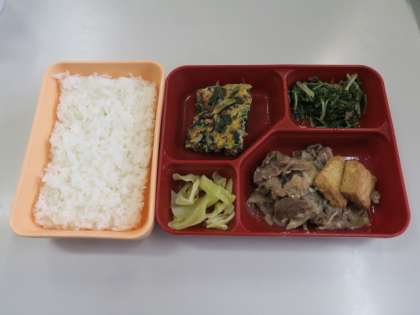 今日の給食は、すき焼煮、ひじきの厚焼き卵が出ました。中学校給食は中学生にとって必要な栄養をバランスよく献立されています。残さずに食べるよう心がけ、元気で丈夫な身体をつくりましょう。