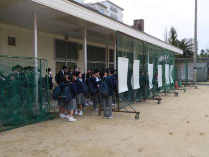 クラス発表が3年生は技術室前、2年生はピロティで行われました。生徒たちは、クラスを確認後、新しい友達が待つ、新しい学年の教室に行きました。