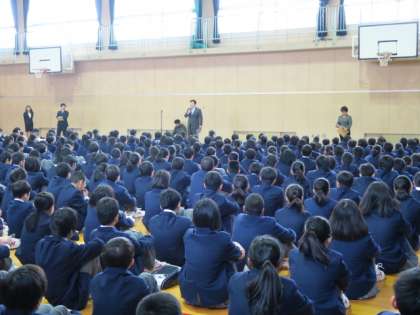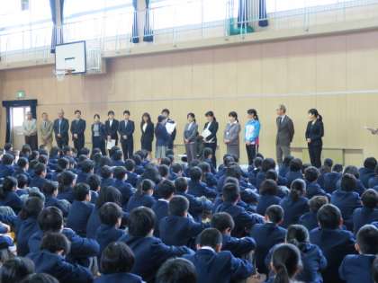 また、始業式の前には転入してきた教職員の紹介がありました。たくさんの先生方が新たに蒲生中学校の一員になりました。新転任の方とともに蒲生中学校がより良い学校になるよう努めてまいります。