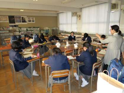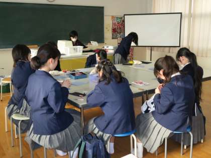 家庭科室で、家庭科部が先輩に交じって裁縫を行っていました。美術部では、鉛筆でスプーンのデッサンをしていました。