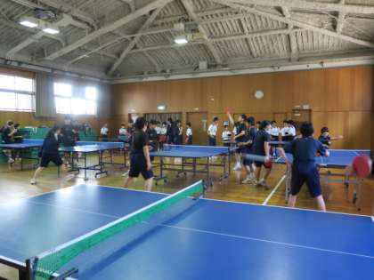 後半の練習風景ですが、格技室は卓球部、体育館はバトミントン部が使用していました。どちらの部も人気があるのか、格技室、体育館が部員で所狭しとなっていますが、それぞれの部とも工夫して練習をしていました。