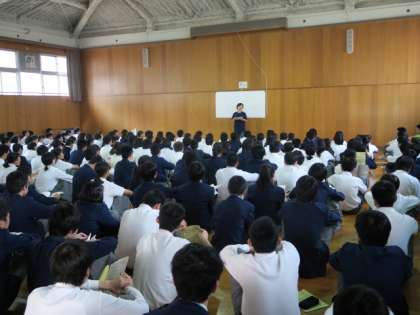 3年生は挌技室で行いました。説明の中では、荷物の準備などのお話とともに、5月15日(月)には、修学旅行の荷物を学校に持ってくることになっています。詳しくは、学年便り5月号をご確認ください。