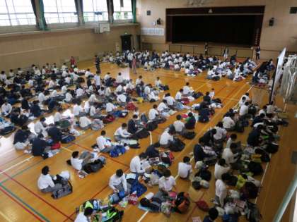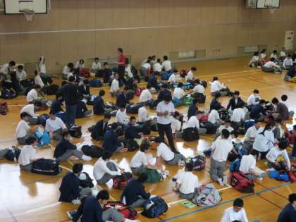 本日、学年便りでお知らせしたように、3年生は修学旅行に持っていく荷物をカバンに入れ学校に持ってきました。6限目に体育館でカバンから荷物を全部出して、荷物の点検と荷物の整理をして、カバンに入れなおしました。