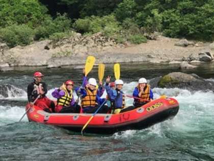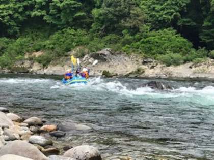 川の流れにパドルがとられないよう、パドルを水面からあげて上手に下っていますね。