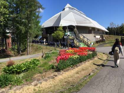 自然豊かな場所で、きれいな建物です。ここでは、キャンドルとオルゴールづくりの体験を行います。