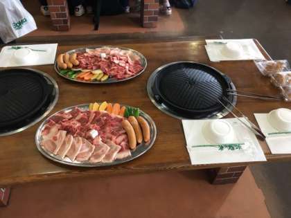 午前の体験学習を無事終えました。昼食は牧歌の里でバーベキューです。