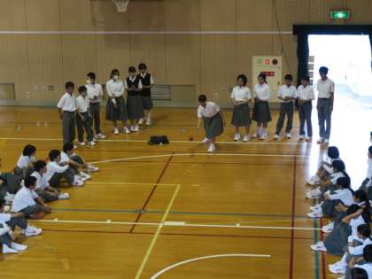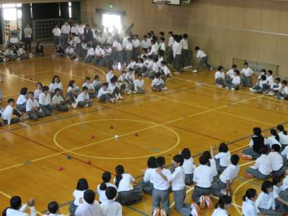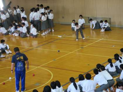 6限目に体育館で、長居障がい者スポーツセンターの方を講師に招き、ボッチャ講習会を行いました。