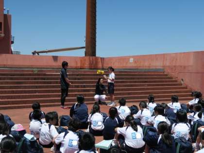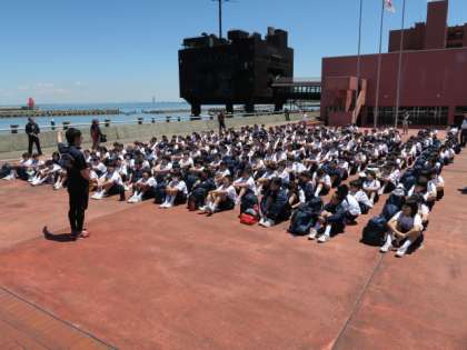 入所式です。海洋センターの方からみんなで協力し体験活動を行ってくださいとのお話がありました。