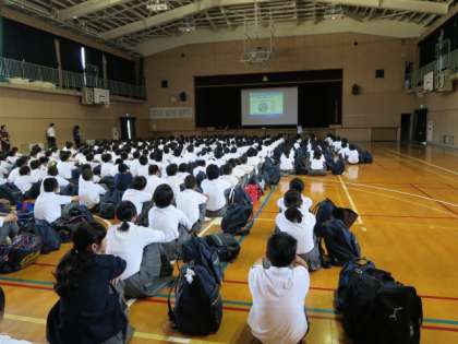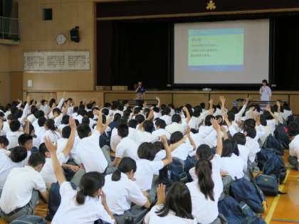 3限目終了後、運動部の部員と文化部で希望する生徒対象に熱中症予防学習会を体育館で行いました。