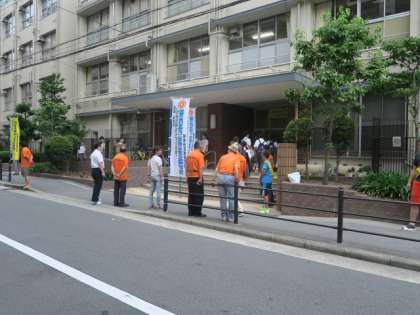 明日7月20日は1学期の終業式です。学期の始まりと終わりに城東区保護司会の方たちに、朝のあいさつ運動を行っていただいています。8時15分頃が生徒たちの登校時間のピークで、8時25分にはほとんどの生徒が登校してきます。8時30分まであいさつ運動を行っていただきました。ありがとうございました。
