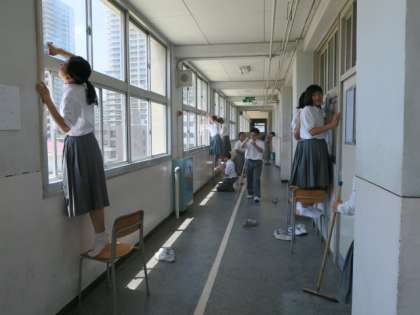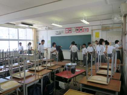本日の4限目に全学年で大清掃を行いました。教室だけでなく廊下の窓や壁、また特別教室も清掃を行いました。