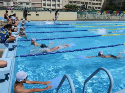 水泳大会で応援の仕方など十分にできなかったところは、次の体育大会で頑張ってください。