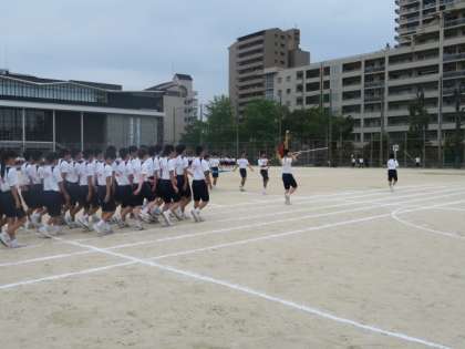 本日の3,4限目に体育大会の全体練習を行いました。途中より雨が降ってきましたが、入場行進、開会式そして閉会式までの練習を行うことができました。どのクラスも、足並みをそろえて入場行進ができていました。どの学年も練習をしっかりと行ってきたことがうかがえました。