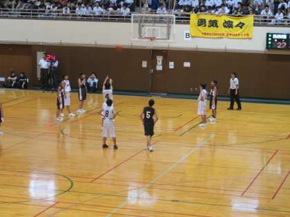 本校の女子バスケットボール部は、準決勝で平野北中学校と対戦しましたが、惜しくも敗れました。3位決定戦は、三国中学校との試合です。三国中学校とは、今年2回対戦していますが、2回とも負けていました。しかし、今回は蒲生中が、序盤から終盤まで有利に試合を運び、見事に勝利しました。