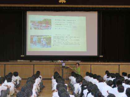 担当の先生より、サイクルスポーツセンターの施設や乗り物の内容を映像で説明しました。