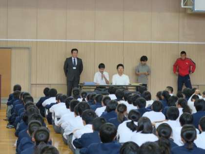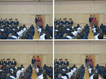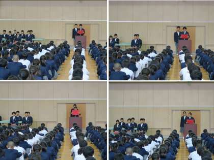 各候補者から全校生徒に向け演説がありました。候補者からは、学校行事、学校生活、清掃活動など様々な公約がありました。中には、重なる公約もありましたが、蒲生中学校をより良くしようという意気込みが伝わってきました。