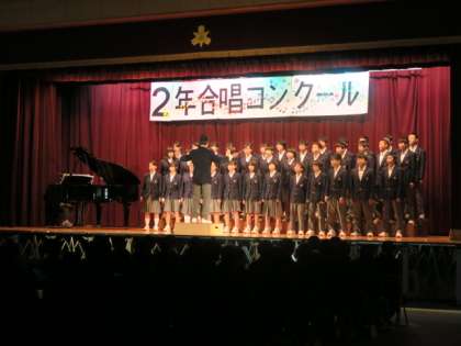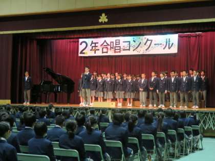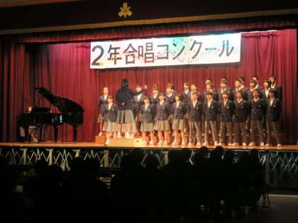 コンクールは、課題曲『メッセージ』と各クラスの自由曲を合唱しました。各クラスの自由曲及び出演順は以下のとおりです。