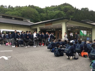 5月20日(日)夕方、ラフティングを無事終えて、宿舎のひるがみの森に到着。