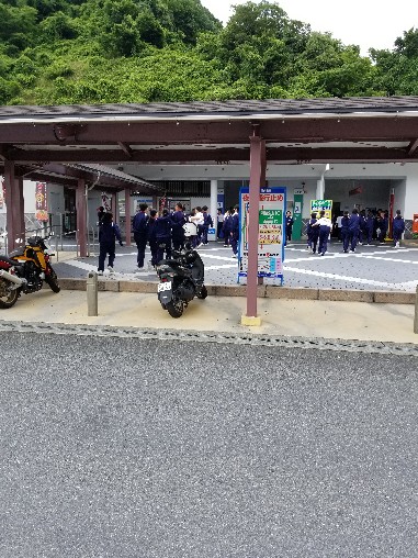 1年生は岸和田サービスエリアに到着し、現在、トイレ休憩中です。