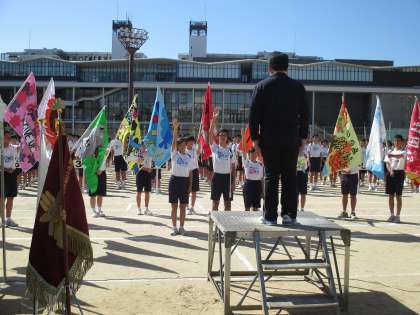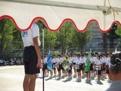 生徒入場が終わり、生徒会長による「生徒代表アピール」があり、生徒代表の「選手宣誓」がありました。