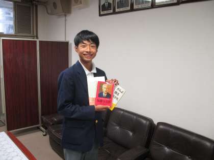 五十嵐くん、加藤山崎教育基金より書籍の贈呈!