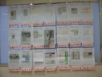 写真は、1年の保健体育科の作品です。新聞の切り抜き等を通して、スポーツの考察をしています。