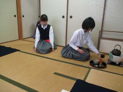 11時から、3階の和室において、茶道部によるお点前が披露されました。