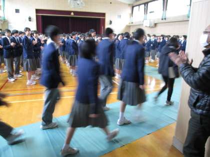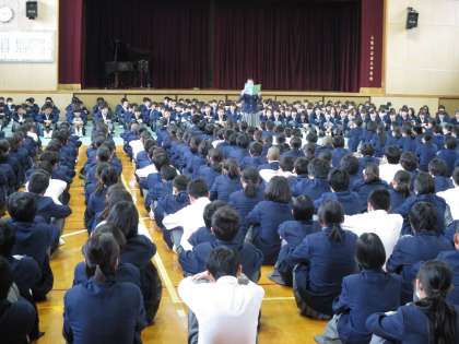 3月14日(木)に挙行される卒業証書授与式が、式場となる本校の体育館の関係で、1・2年生の代表生徒のみの参列で、全員が参列できません。そのため、今回の3年生を送る会により、1・2年生全体でのお別れの会とさせていただきます。