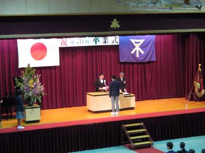 3月14日(木)午前10時頃、本校体育館にて、第70回卒業証書授与式が挙行されました。天候は晴れていましたが少し肌寒い中、卒業生も在校生代表もきちんと行うことができました。