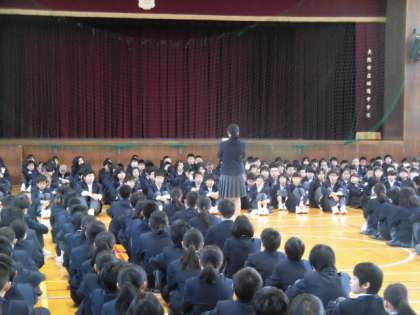 今回初めて、体育館で始業式を行いました。