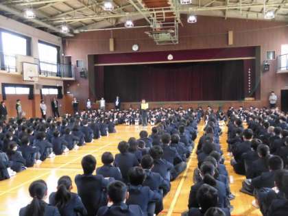 8日(月)、新入生と在校生の対面式を行い、始業式を行いました。