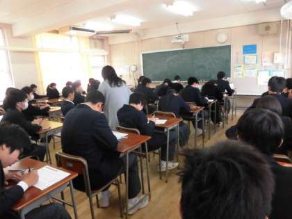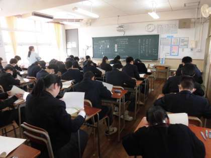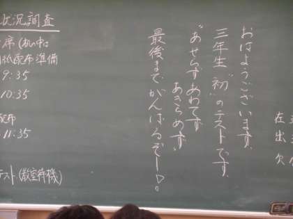 朝の学活で、生徒の皆さんは解答用紙の準備を行っていました。
