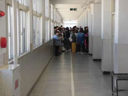 参観では、教室に入りきらず、廊下から参観する保護者の方も多くおられました。今回は、校区小学校6年生の保護者・児童の来校も可能でしたから、6年生の児童も参観に来ていました。