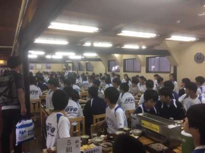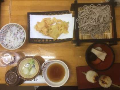 昼食の様子です。信州そば、五平餅です。