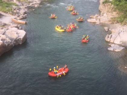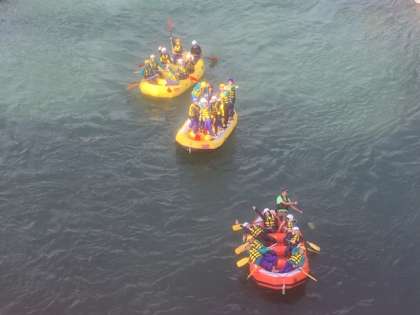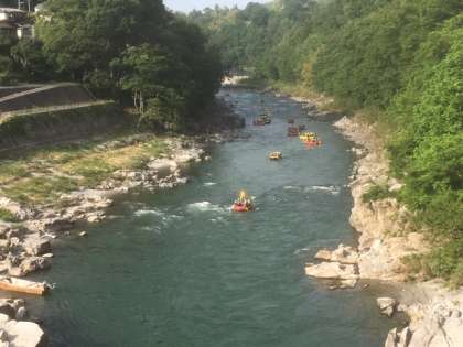 ラフティングは、時又港に到着しました。各艇からは歓声が上がっていました。