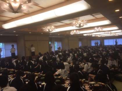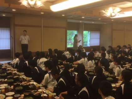 退館式を行いました。これからも修学旅行を楽しんで思い出をたくさん作ってくださいと旅館のお話をいただきました。